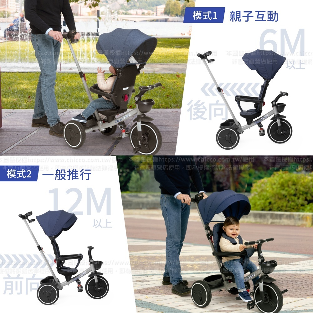 ●親子互動/一般推行/輔助推行/三輪車,共4模式。
