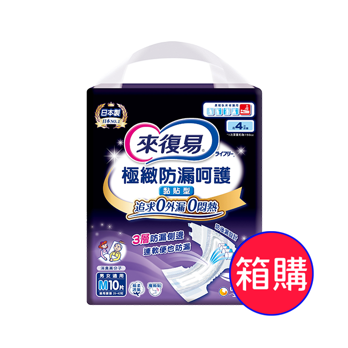 來復易極緻防漏呵護紙尿褲M10P【6包/箱】