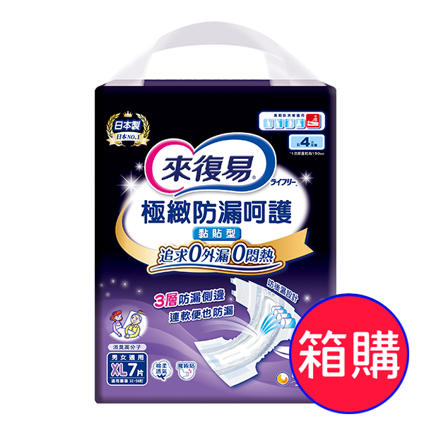 來復易極緻防漏呵護紙尿褲XL7P【6包/箱】