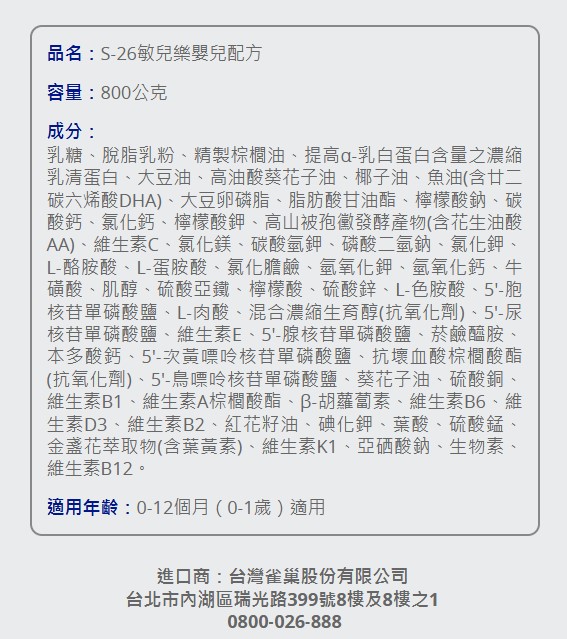 惠氏S-26 敏兒樂嬰兒配方(800gx6罐)
