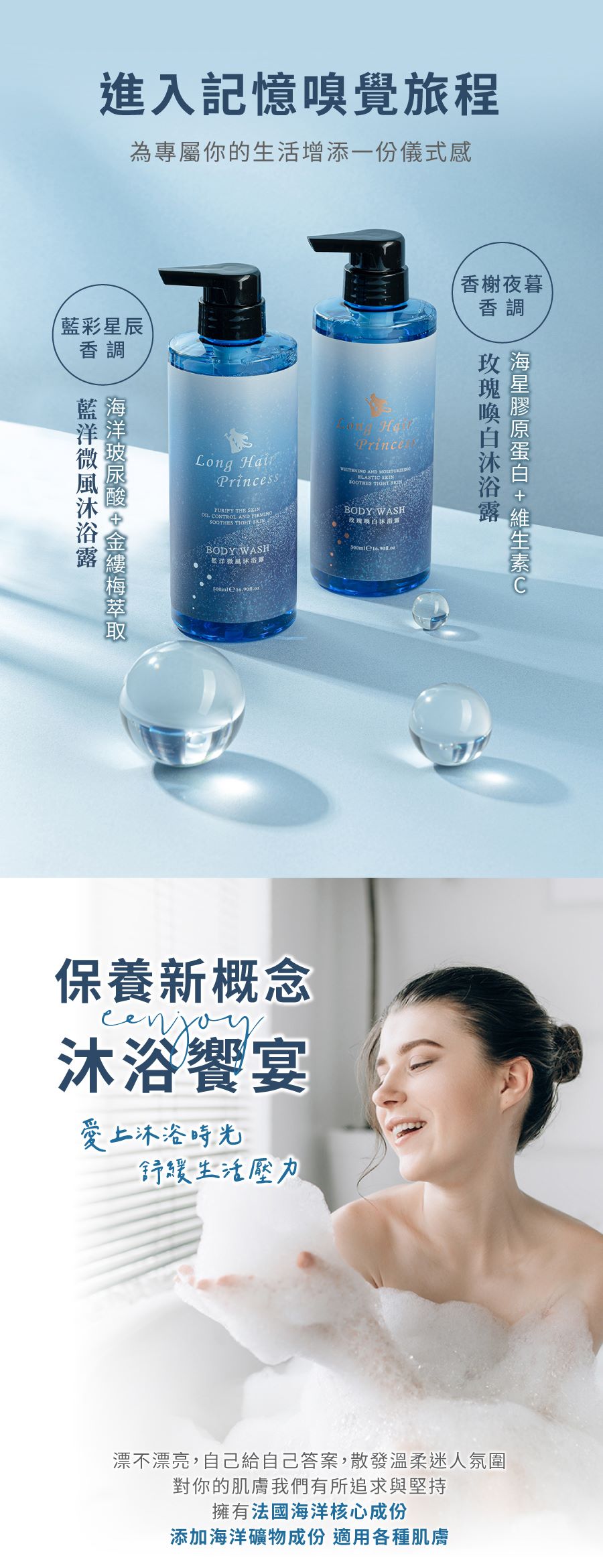 黎漫海洋沐浴露500ml-玫瑰喚白/藍洋微風