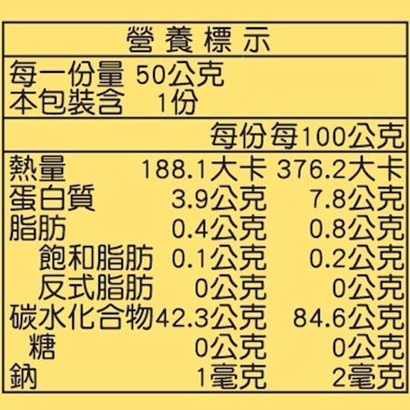 商品注意事項: 1.製造日期與有效期限,商品成分與適用注意事項皆標示於包裝或產品中。 2.產品網頁會因拍攝關係,圖檔/顏色略有差異,實際請以廠商出貨商品實物為主。 3.產品圖及文案若有變動,敬請參照實際商品為準。 成份: 糙(香米台農71號) 淨重: 50g