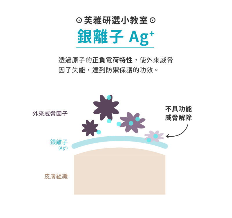 •膠質銀箔(colloidal silver)醫學研究可抗600多種外來不好因子,形成保護層,預防表皮不適