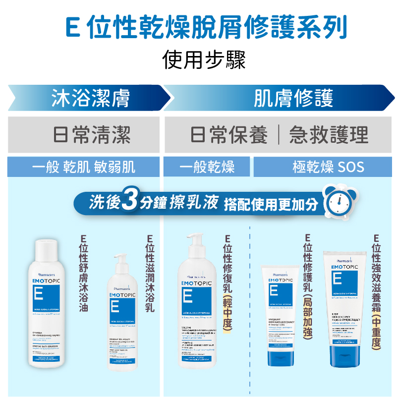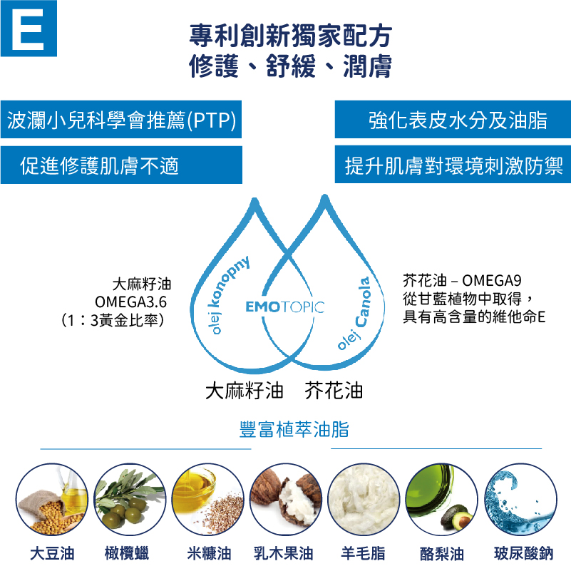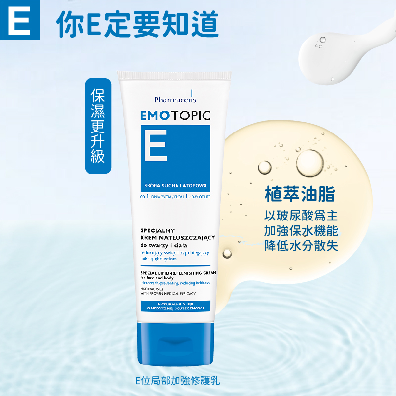 •豐富潤膚配方可協助皮脂膜修護,持久維持肌膚水分與脂質