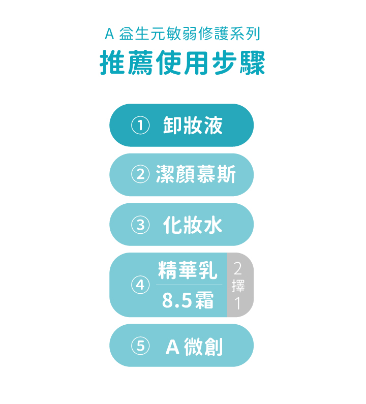 •創新益生元配方,穩定肌膚保護機能,進而強健肌膚,改善肌膚不適