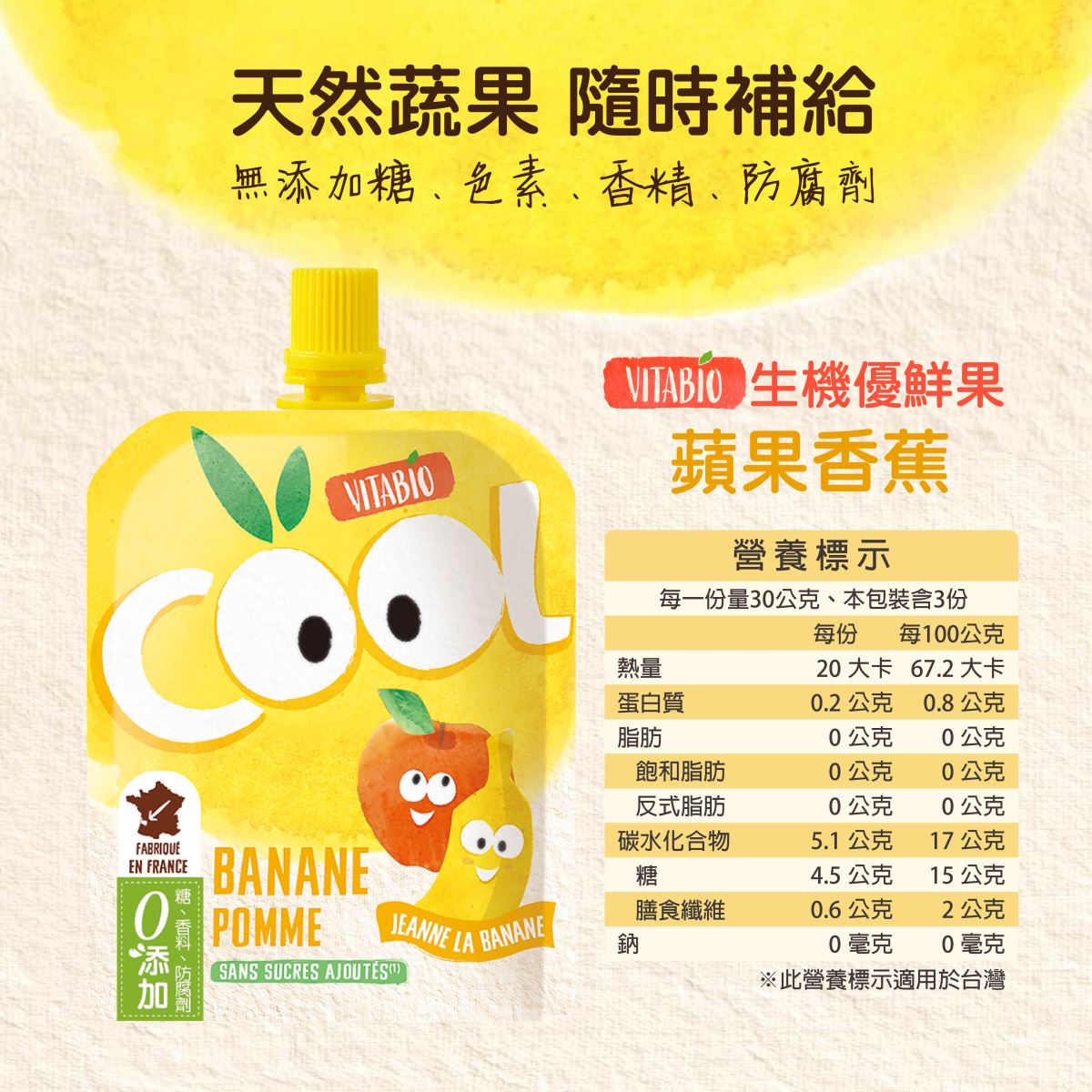 •100%蔬果蒸煮,無糖、無色素