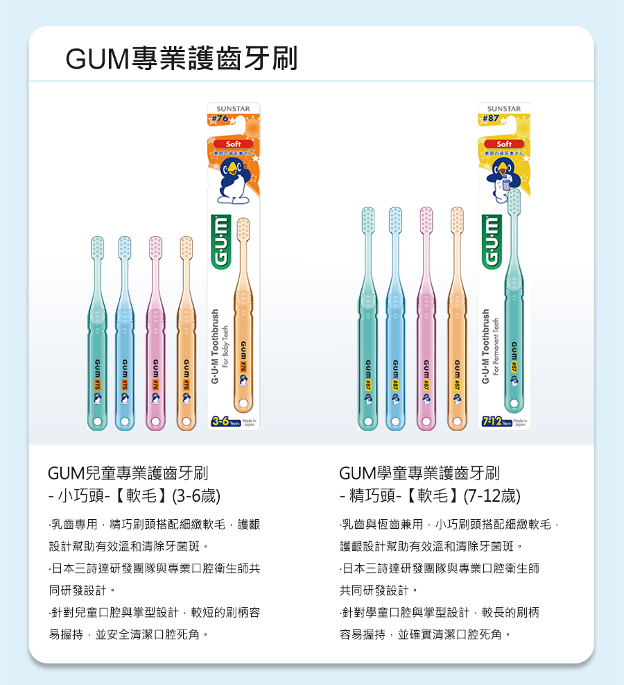 GUM兒童專業護齒牙刷-小巧頭 #76軟毛 3-6Y