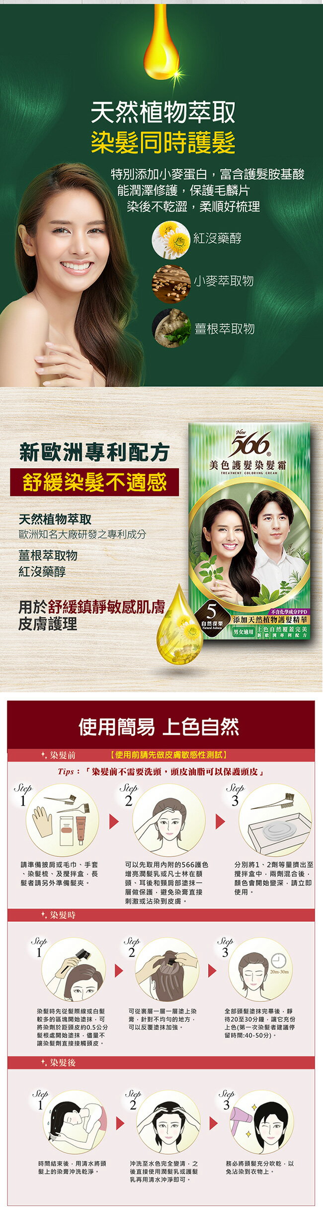 •添加天然植物護髮精華、染髮同時護髮