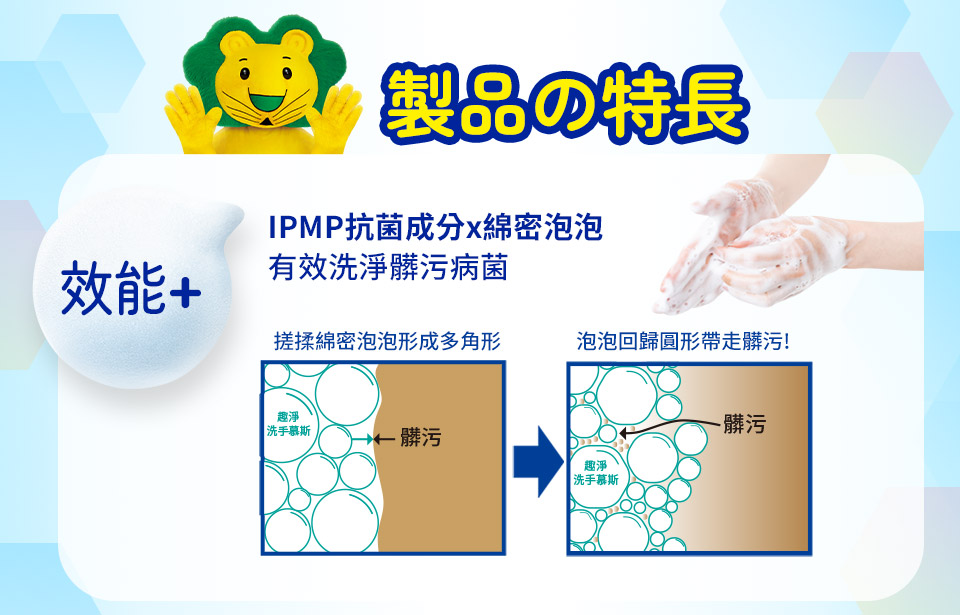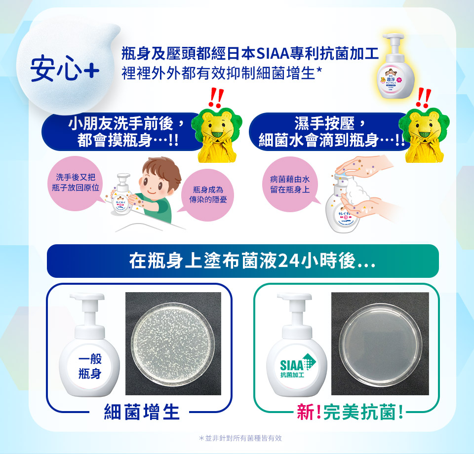 •獨特壓頭可壓出超扎實濃密泡泡,且為通過日本SIAA認證的抗菌壓頭,可降低細菌滋生率。