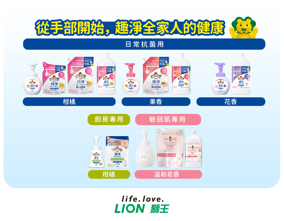 日本獅王趣淨抗菌洗手慕斯(補充包)450ml-果香