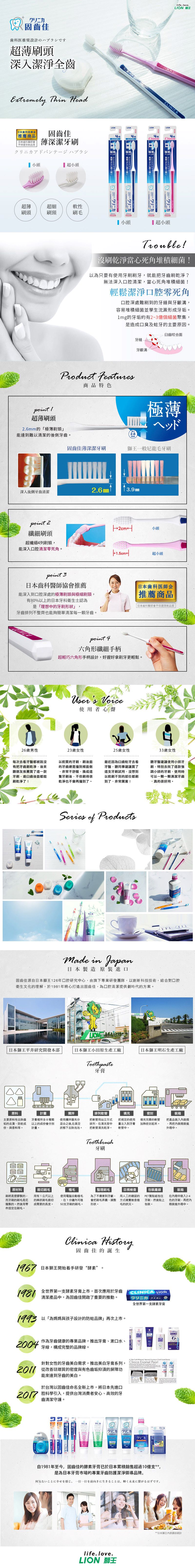 ・日本獅王獨特設計:極薄刷頭僅2.6mm,極細刷頸僅3.5mm。