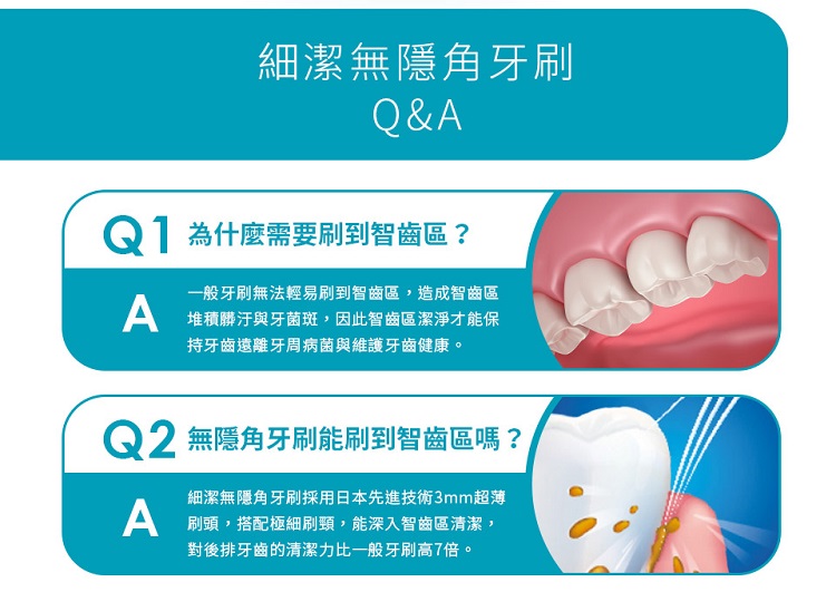 3.日本先進技術3.0mm超薄刷頭,更深入清潔智齒區之難刷窄位。