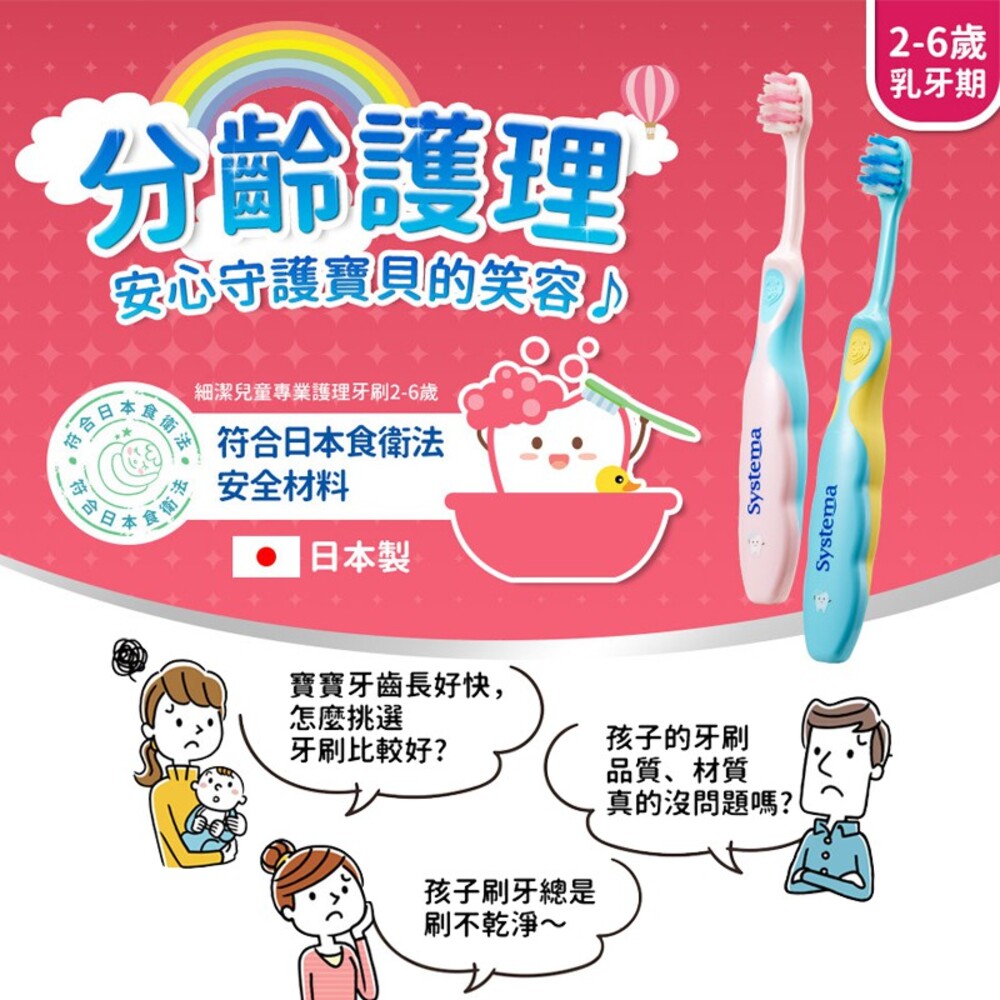・符合日本食衛法:牙刷整體材質使用符合日本食品衛生法的安全材料。