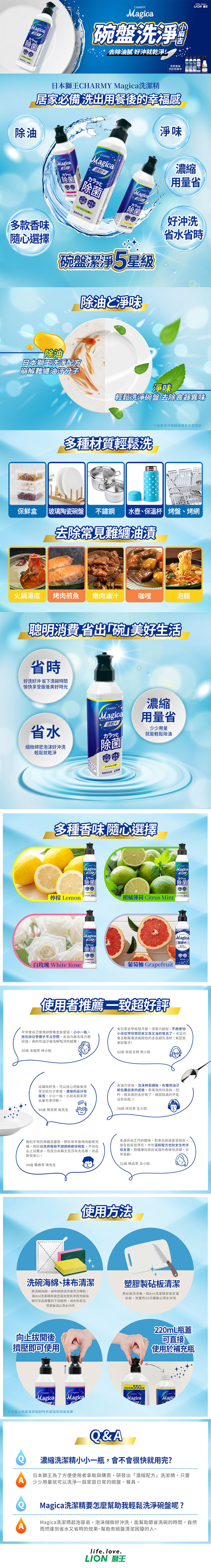獅王Charmy Magica濃縮洗潔精-檸檬220ml
