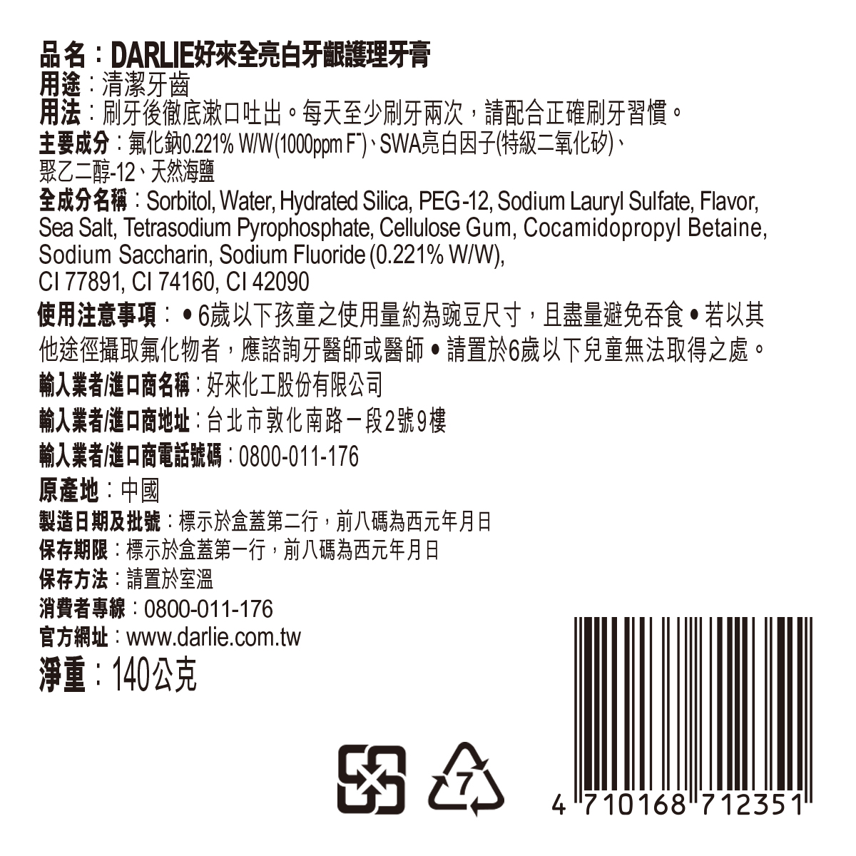- *體外模擬實驗,與好來空白對照亮白牙膏相比