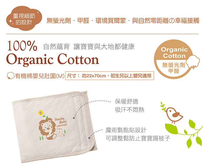 產品特色 1.100%天然有機棉布、通過荷蘭CU國際有機認證。 2.吸汗不悶熱、保暖舒適。 3.魔術氈黏貼設計,可調整黏貼鬆緊度。 產品材質 1.表布:有機棉 100% 2.中層:聚脂纖維 100% 3.裡布:棉 100% 尺寸:約22 X70cm 產地:台灣製