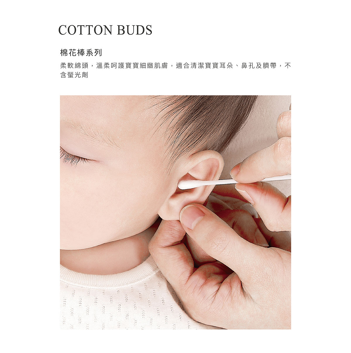 •棉花頭緊實纏繞不脫棉絮,適合清潔寶寶耳朵、鼻孔及臍帶。