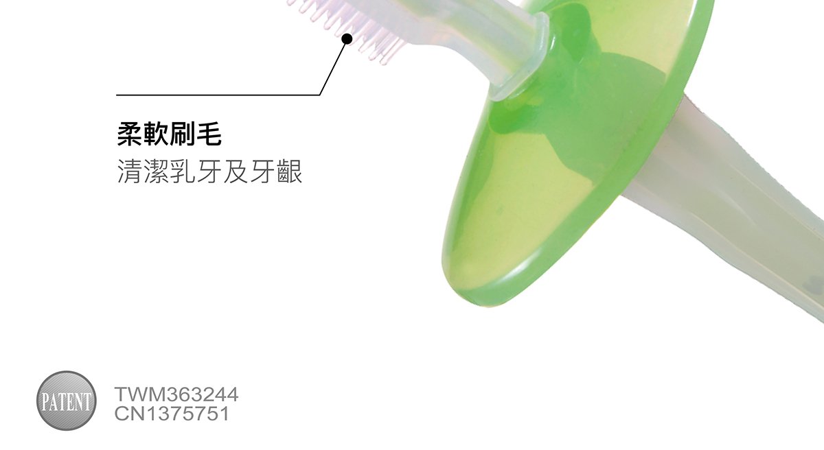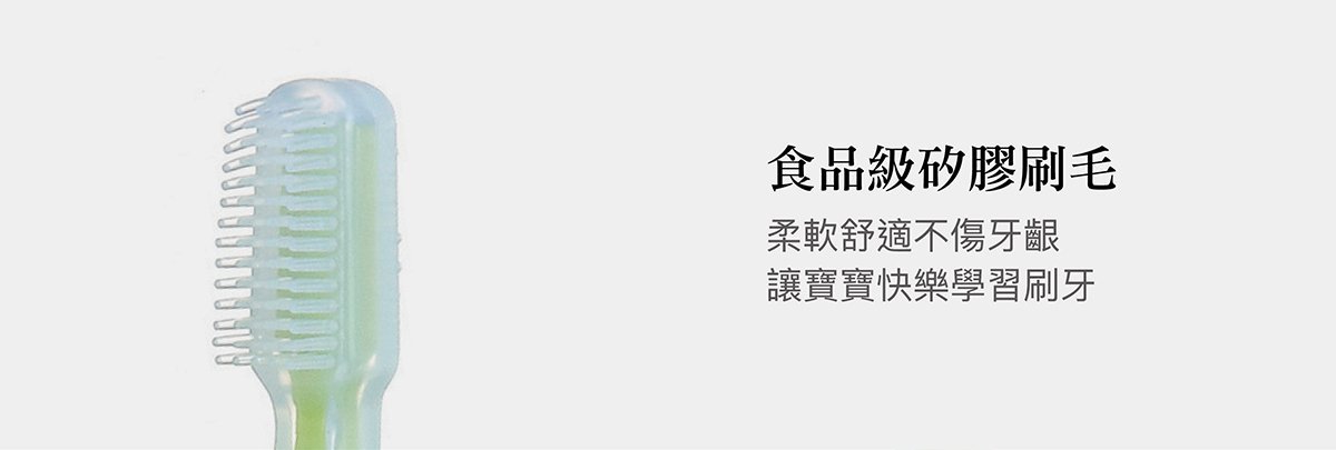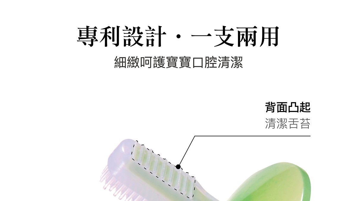 ●適用年齡:寶寶長牙期適用 ●產品特色: 1.專利設計,一支兩用,前面刷牙,背面刮舌苔 2.刷毛採用日本食品級矽膠,柔軟舒適,不傷牙齦,讓寶寶快樂學習刷牙。 3.採用天然新鮮素材,無毒、安全。 4.安全套環,可避免牙刷深喉嚨受傷。 5.耐高溫(100℃±10),整支可消毒。 6.附贈牙刷蓋,外出隨身攜帶,方便衛生。 ●產品材質: 主體:食品級矽膠(-20℃~+120℃) 內刷柄/牙刷蓋:聚丙烯PP(-20℃~+100℃) ●容量:1支入 ●產地:台灣