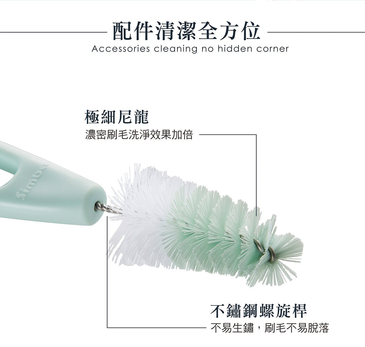 •極細尼龍刷,能將奶嘴或較小配件細微處清洗乾淨。