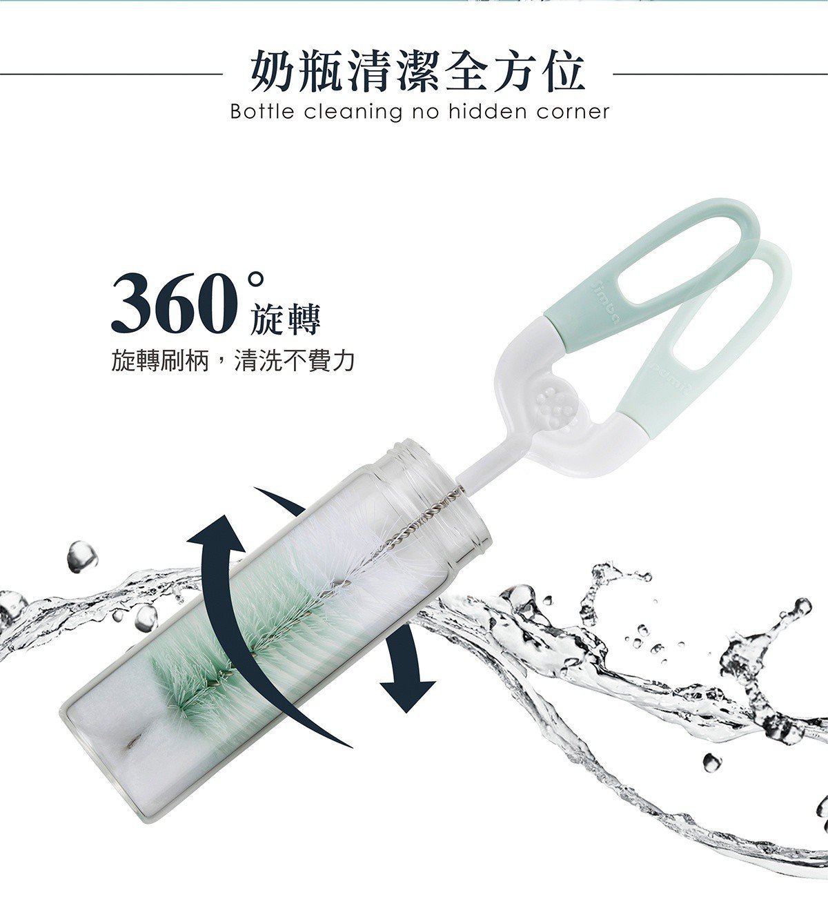 •360度全方位旋轉刷柄,洗淨不費力。