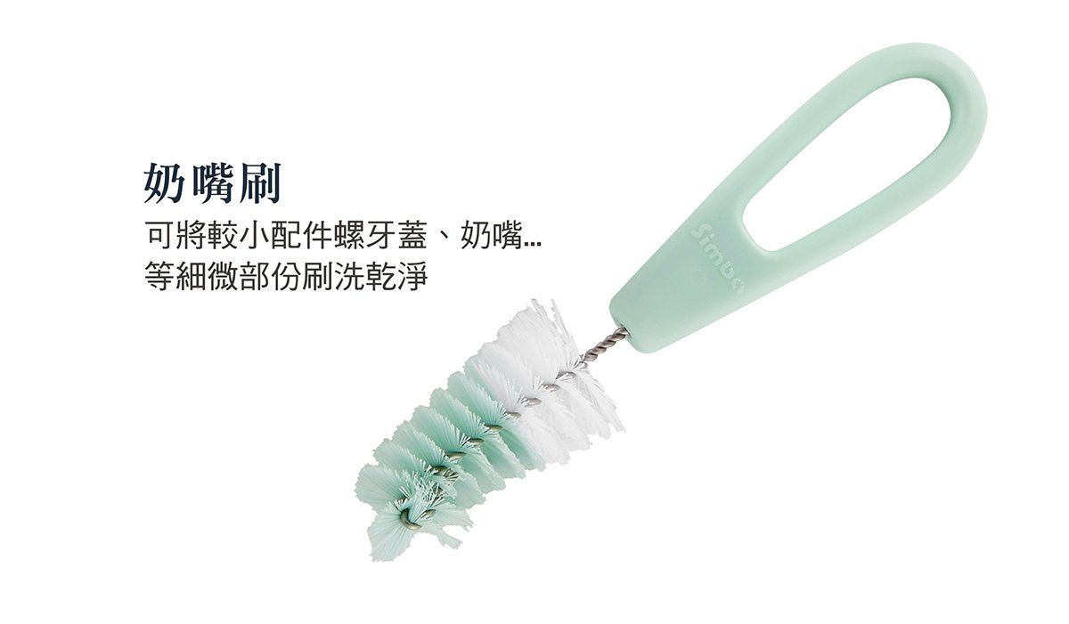 •搭配奶嘴刷徹底清潔中蓋及其他奶瓶細小配件。