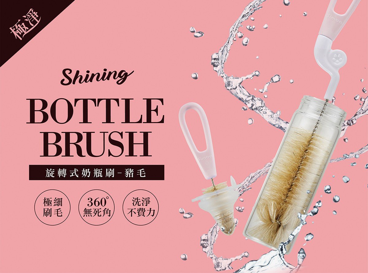 Simba旋轉式奶瓶刷(豬毛)-粉綠/蜜粉