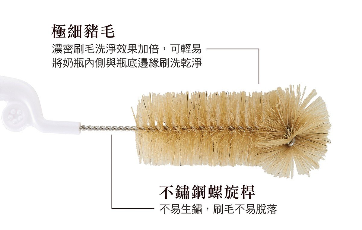 •不鏽鋼螺旋桿,不易生鏽,刷毛不易脫落,適合各種大小奶瓶使用。