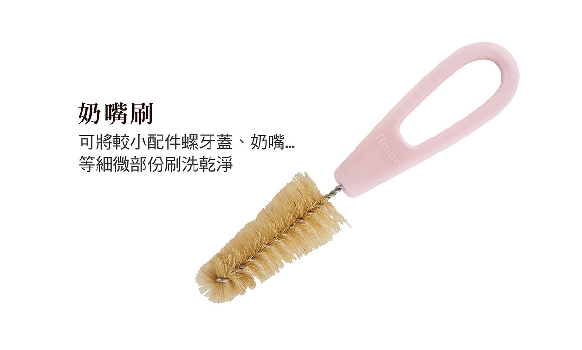 •搭配奶嘴刷徹底清潔中蓋及其他奶瓶細小配件。