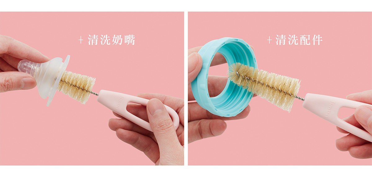 •刷毛柔軟不刮傷奶瓶,可輕易將奶瓶內側與瓶底邊緣刷洗乾淨,洗淨效果加倍。