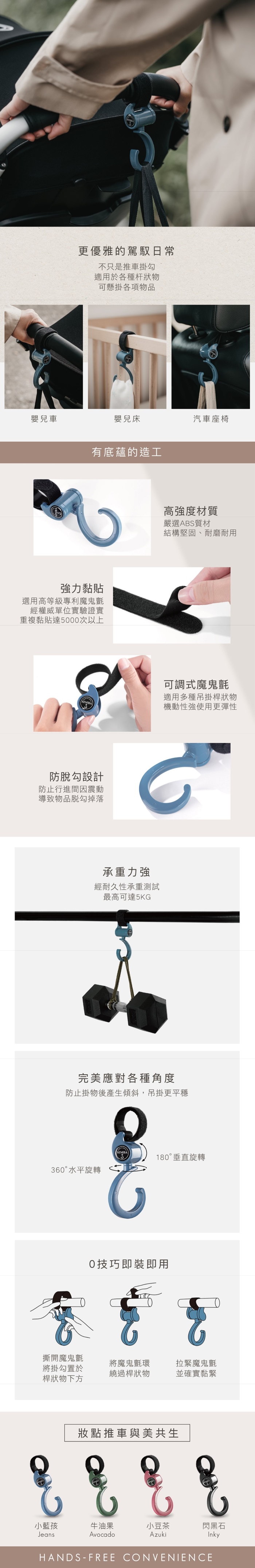 •採用魔鬼氈設計,可重複使用,撕貼方便,穩定牢靠