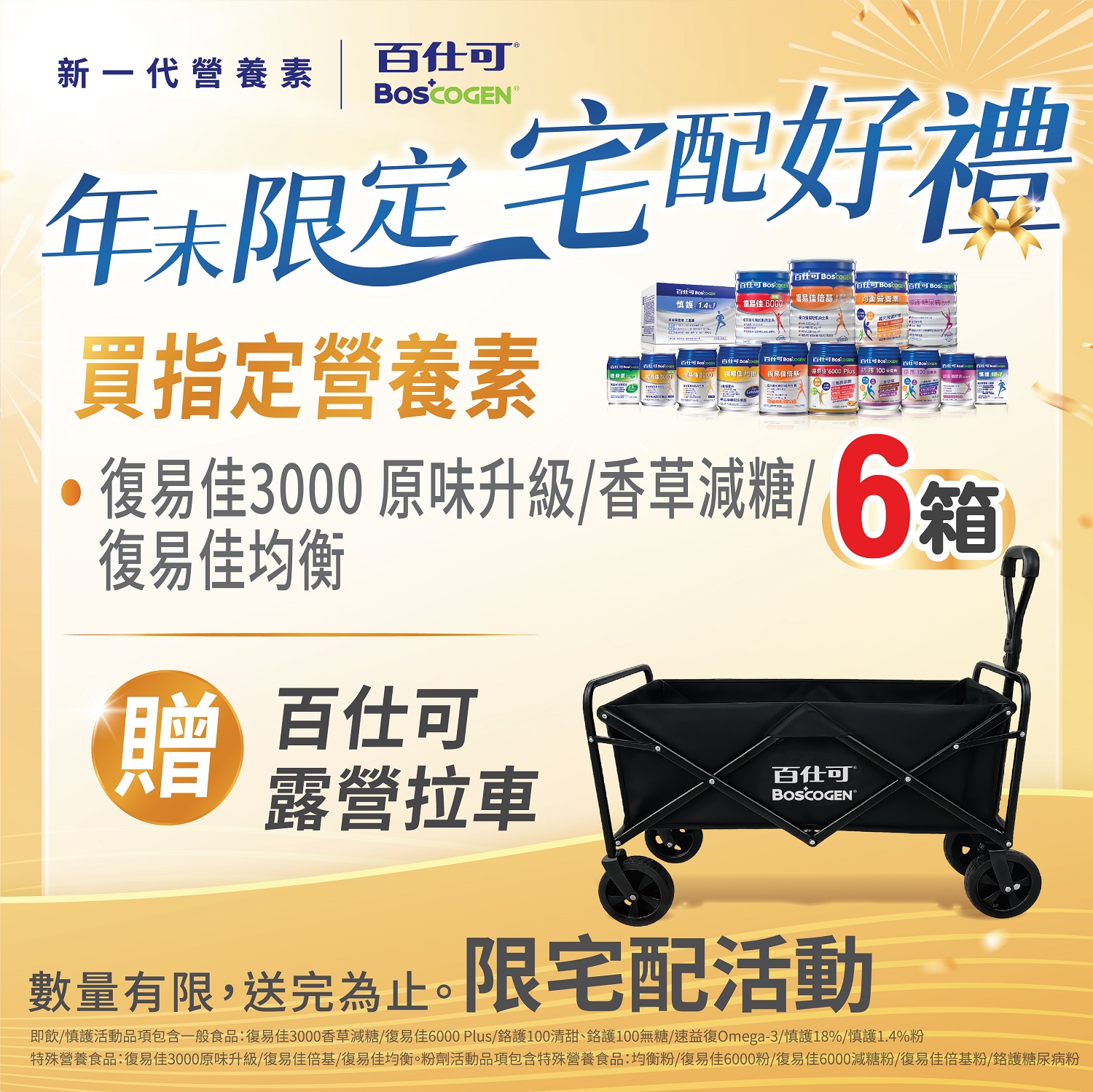 百仕可年末限定,買6箱(同品項)送百仕可露營拉車,送完為止