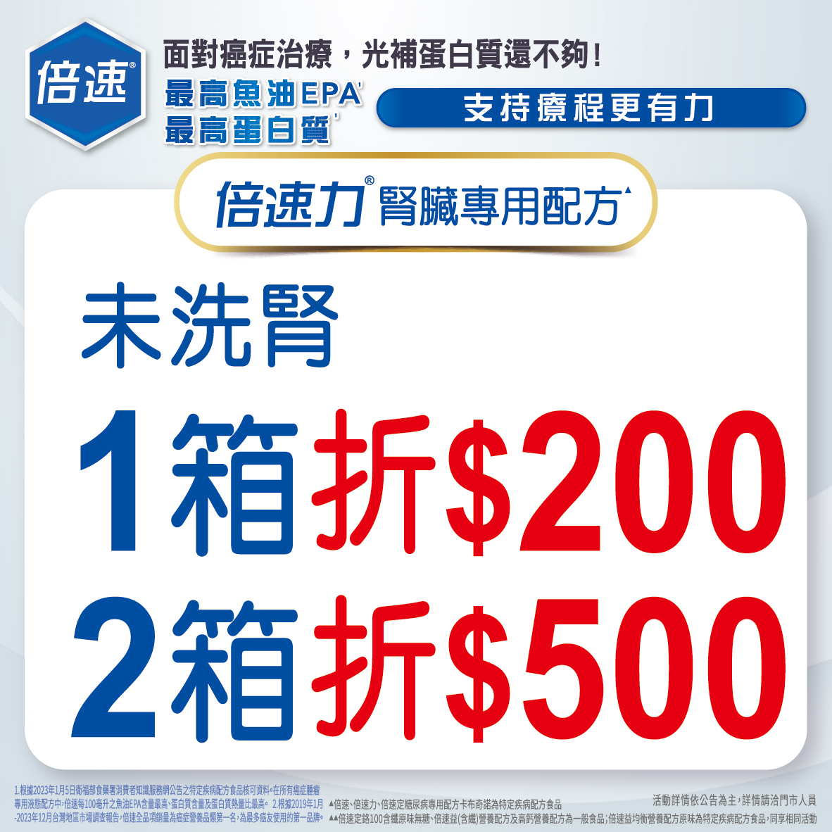☆倍速力未洗腎配方,買1箱折200元,買2箱折500元