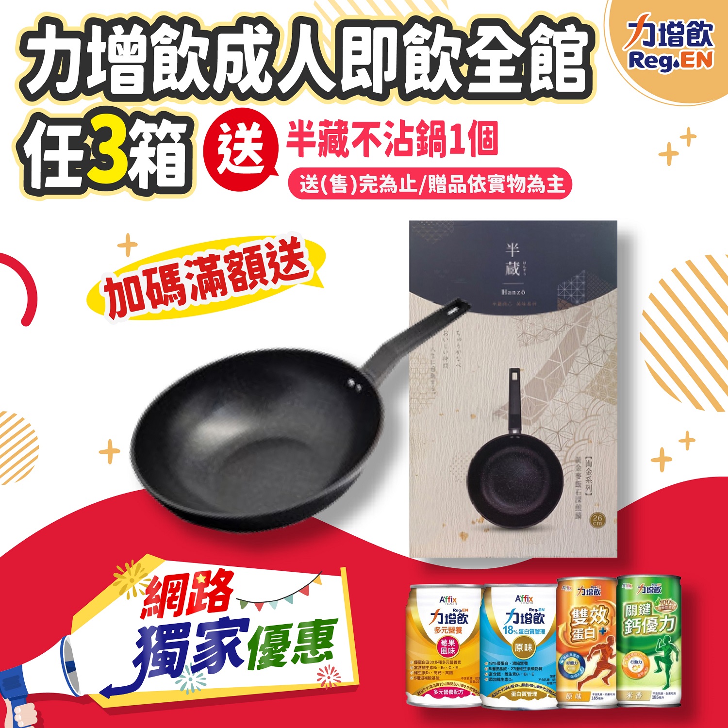 【網路獨家優惠】力增飲成人即飲全館消費任3箱 送半藏不沾鍋1個(送完為止/不累贈)