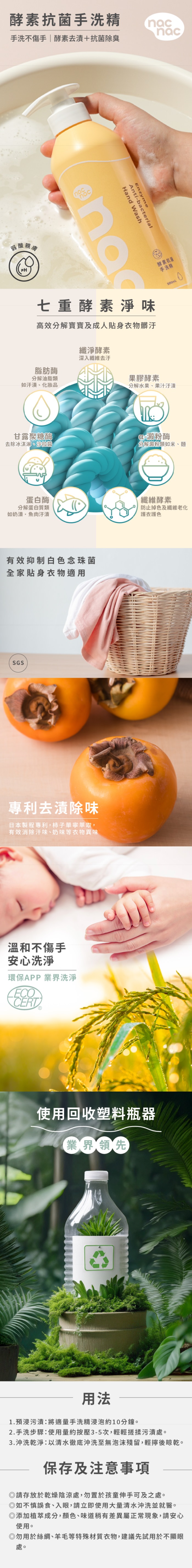 •七酵潔淨配方:七重酵素,針對奶漬、尿漬、汗垢等寶寶常見頑垢強效分解,讓衣物恢復潔白清新。