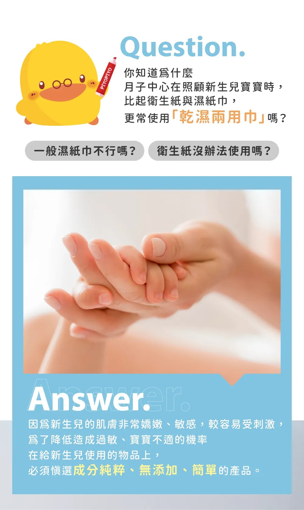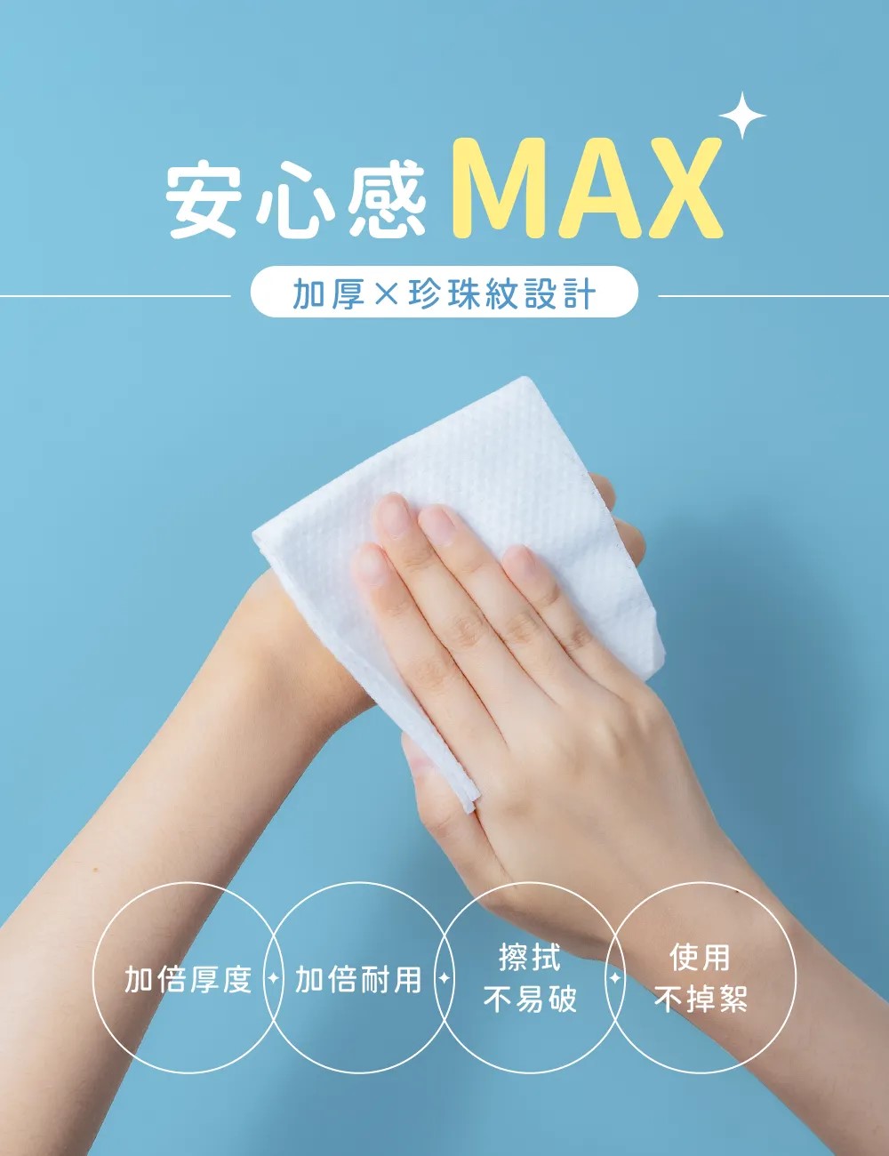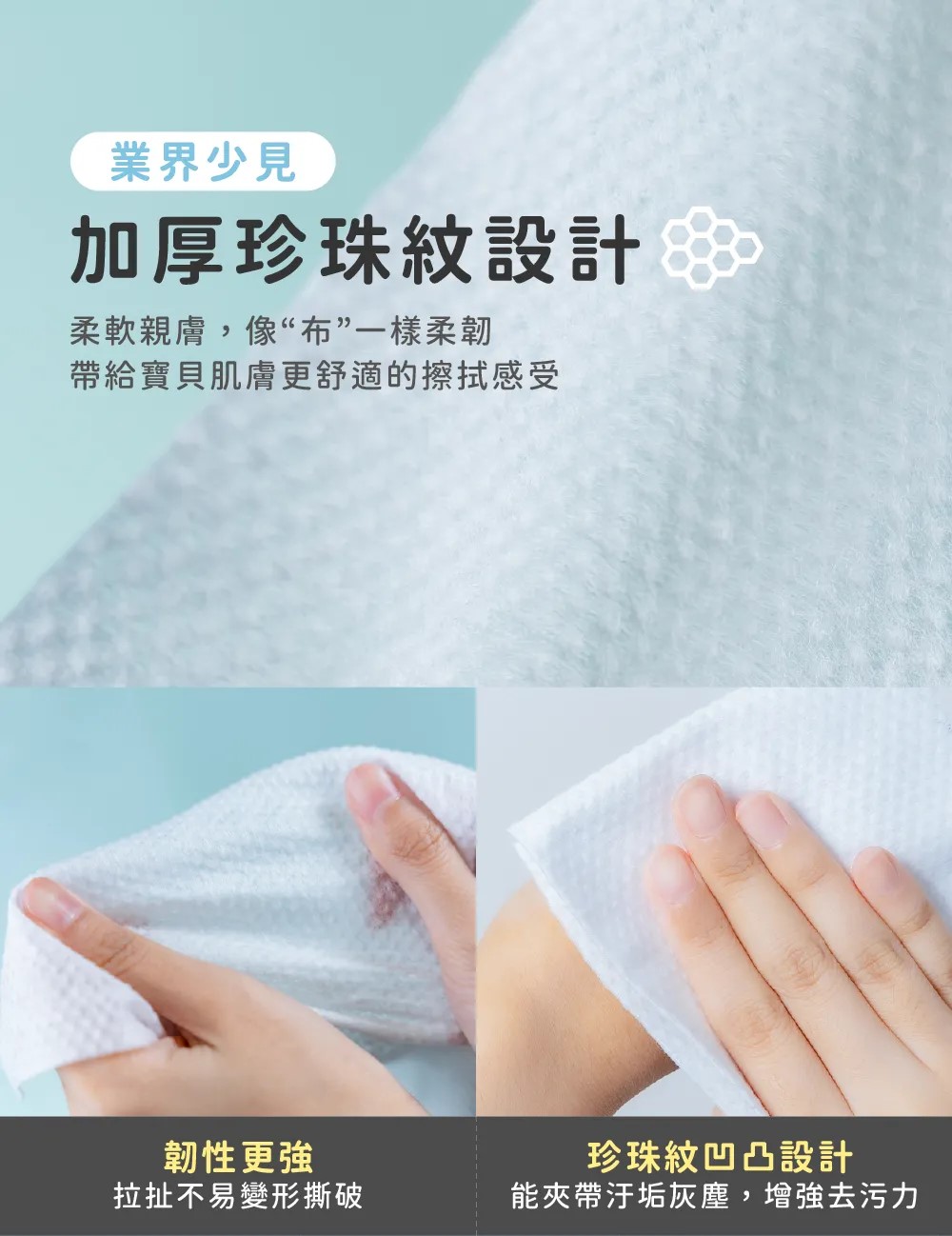 •乾濕兩用沾水瞬吸,耳、鼻、口、身擦拭都安心。
