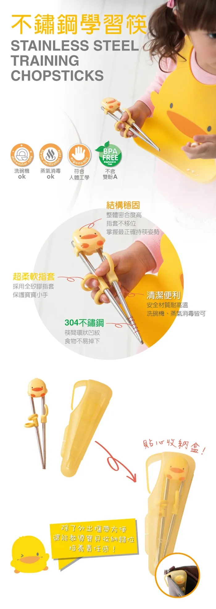 黃鴨造型不鏽鋼學習筷-附盒/不含盒