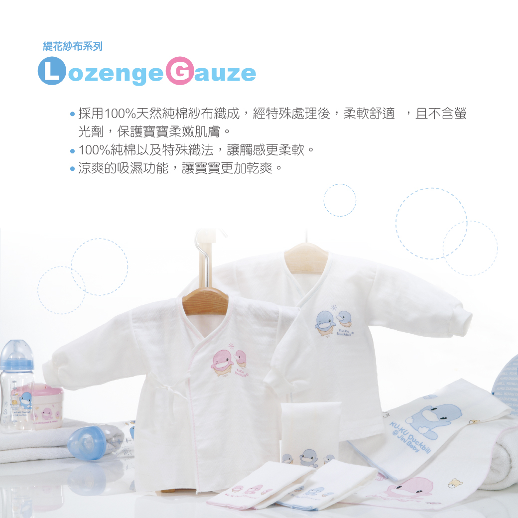•採用100%天然純棉紗布織成,經特殊處理後,柔軟舒適 ,且不含螢光劑,保護寶寶柔嫩肌膚。