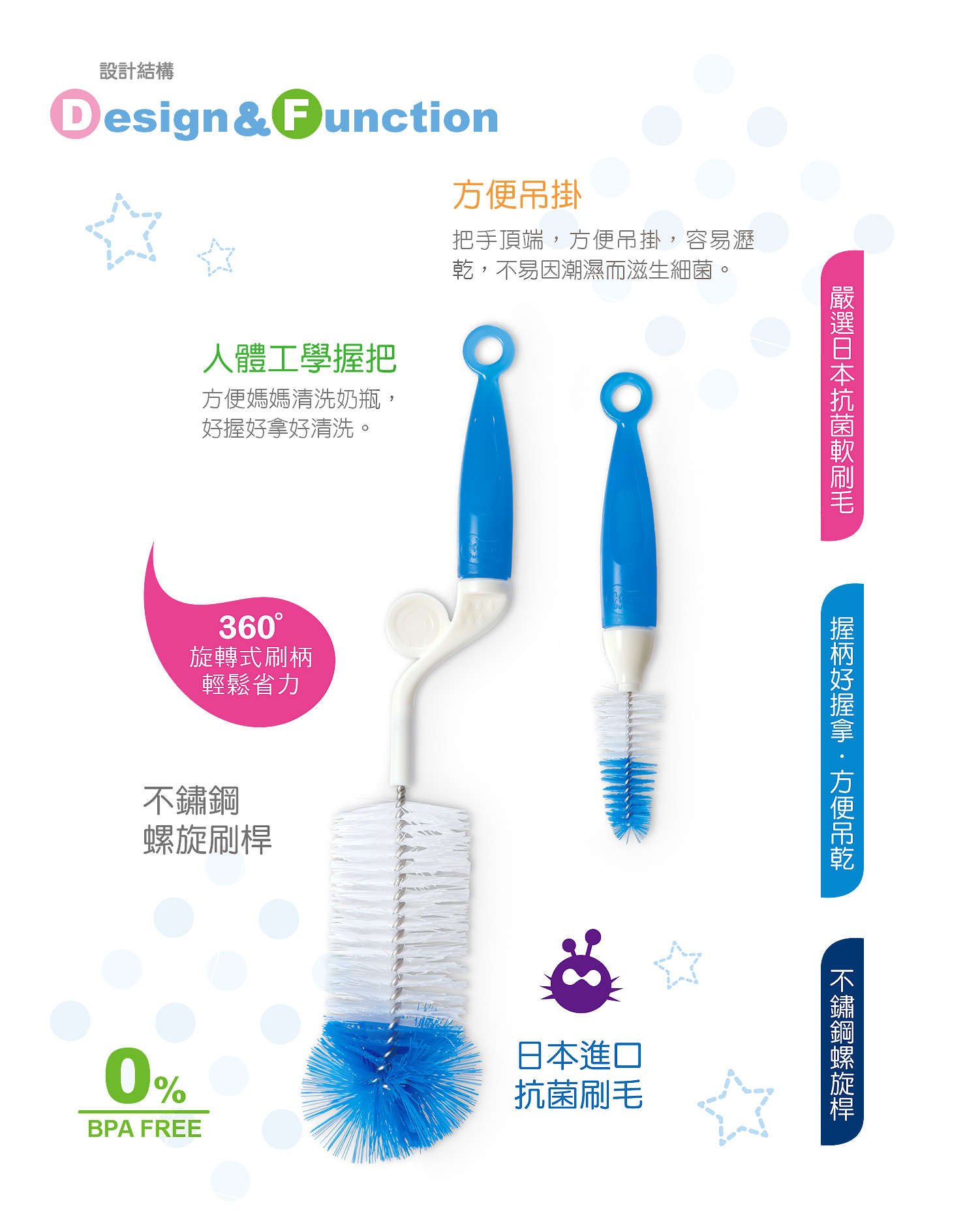 2.大清潔刷適合清洗奶瓶、喝水杯。
