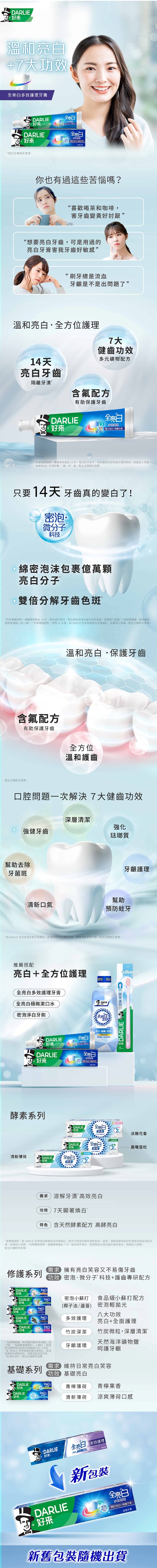 多效護理配方針對7大口腔護理問題﹕牙齦護理、強化琺瑯質、幫助去除牙菌斑、深層清潔、幫助預防蛀牙、清新口氣、牙齒強健
