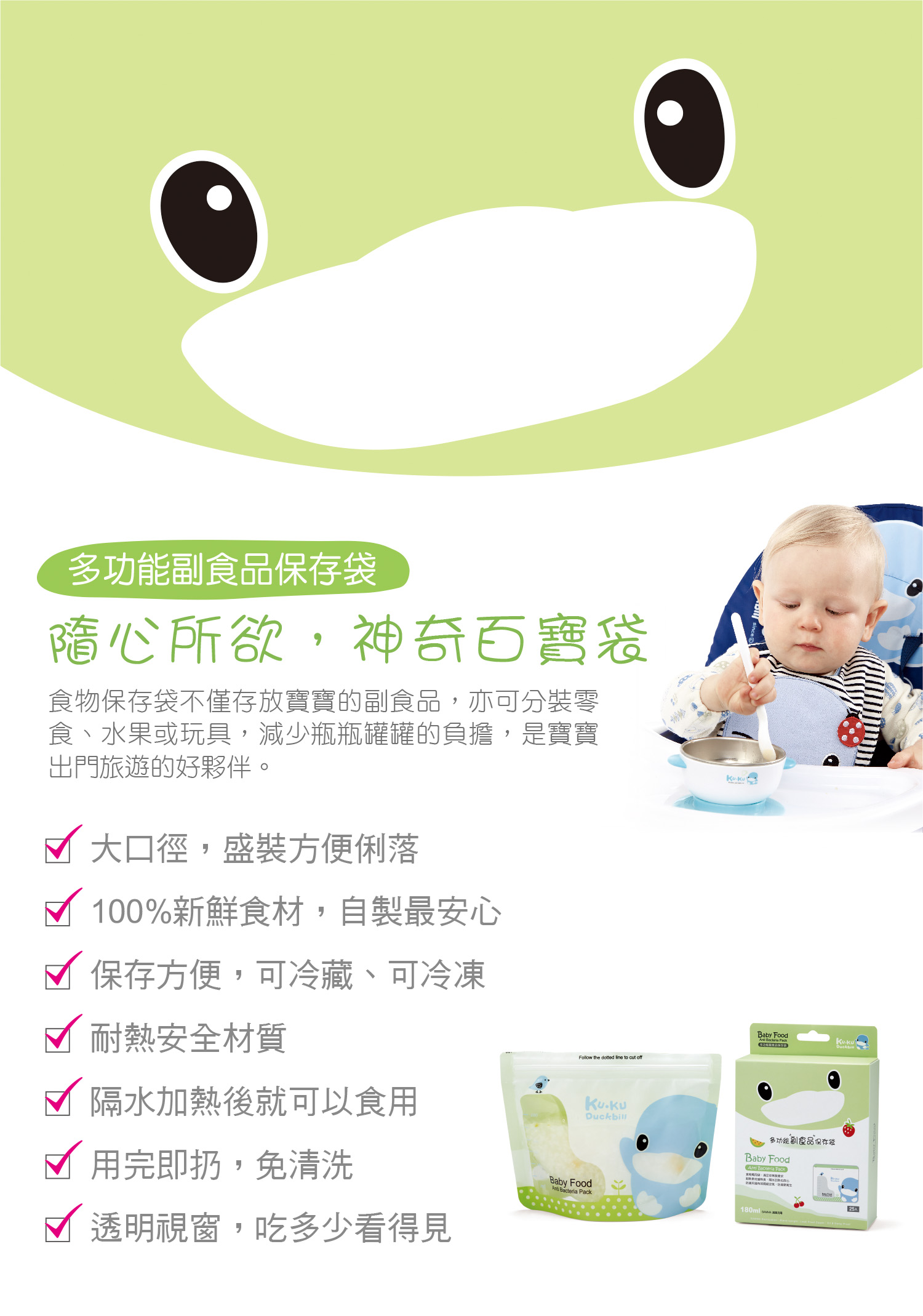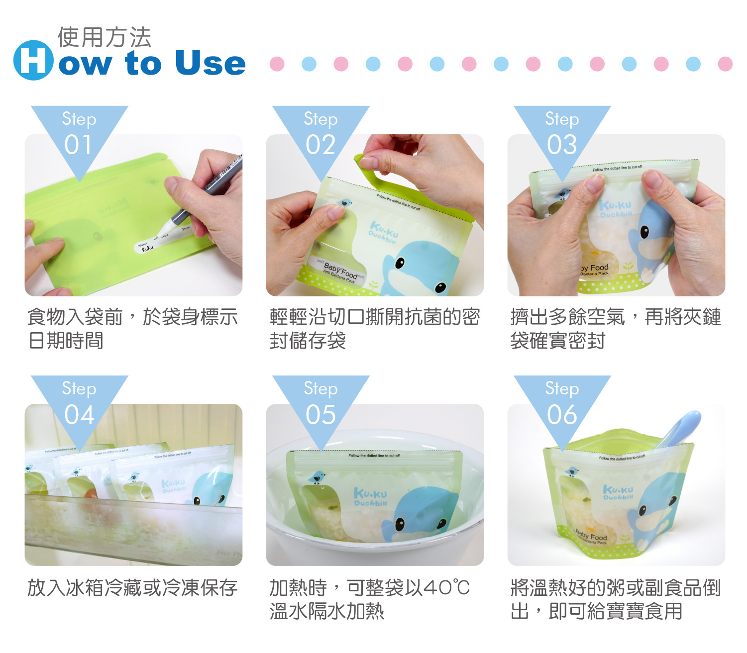•隔水加熱─整袋可直接隔水加熱(約40℃),加熱後倒出食物即可食用。