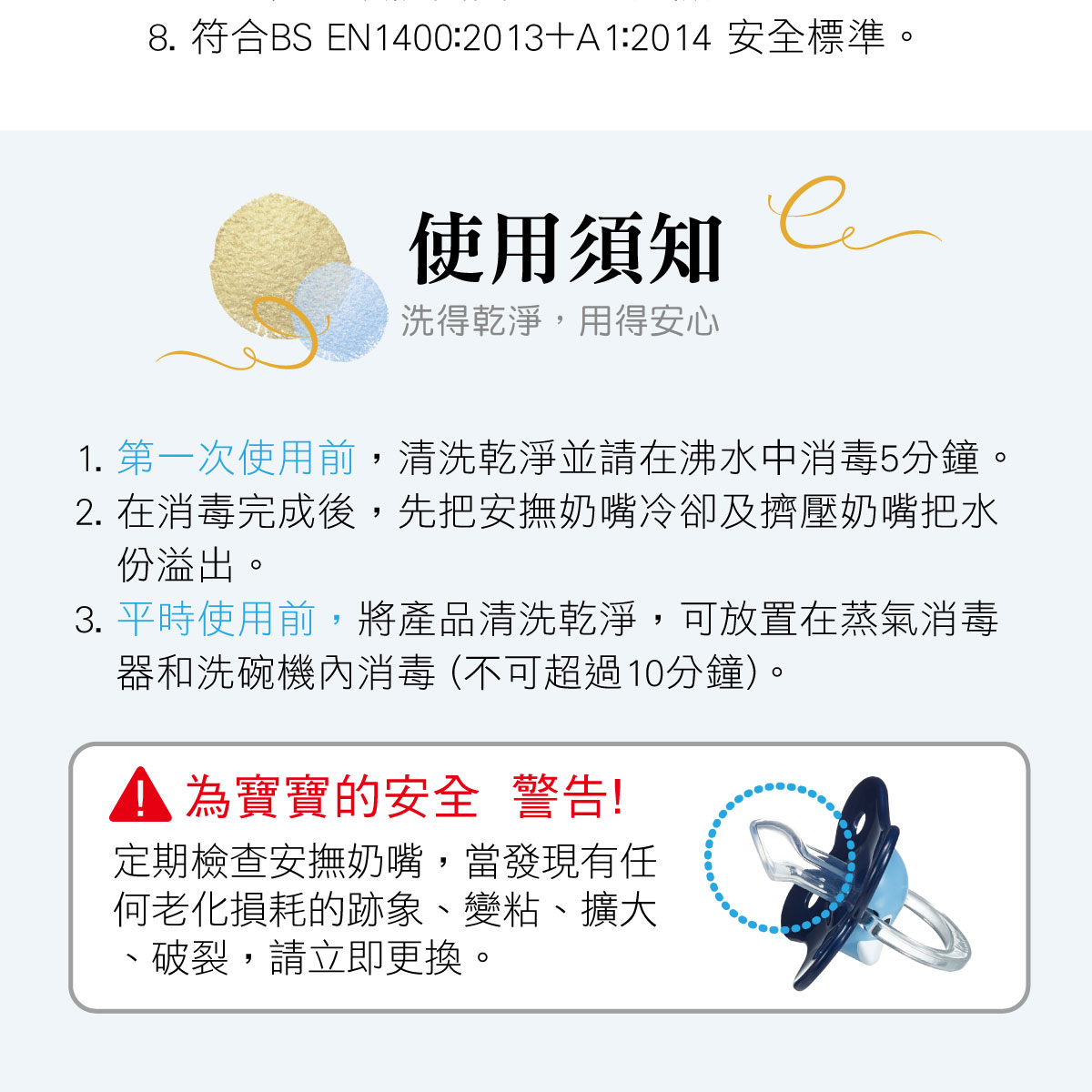 •每個寶寶都有吸吮的需求 安撫奶嘴比吸吮手指衛生且易於戒除