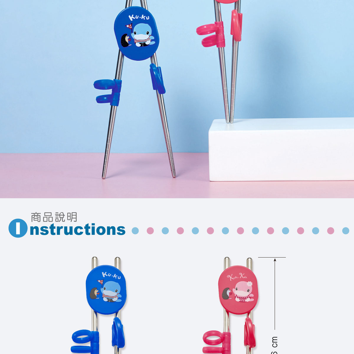 kuku 不銹鋼學習筷-藍/粉