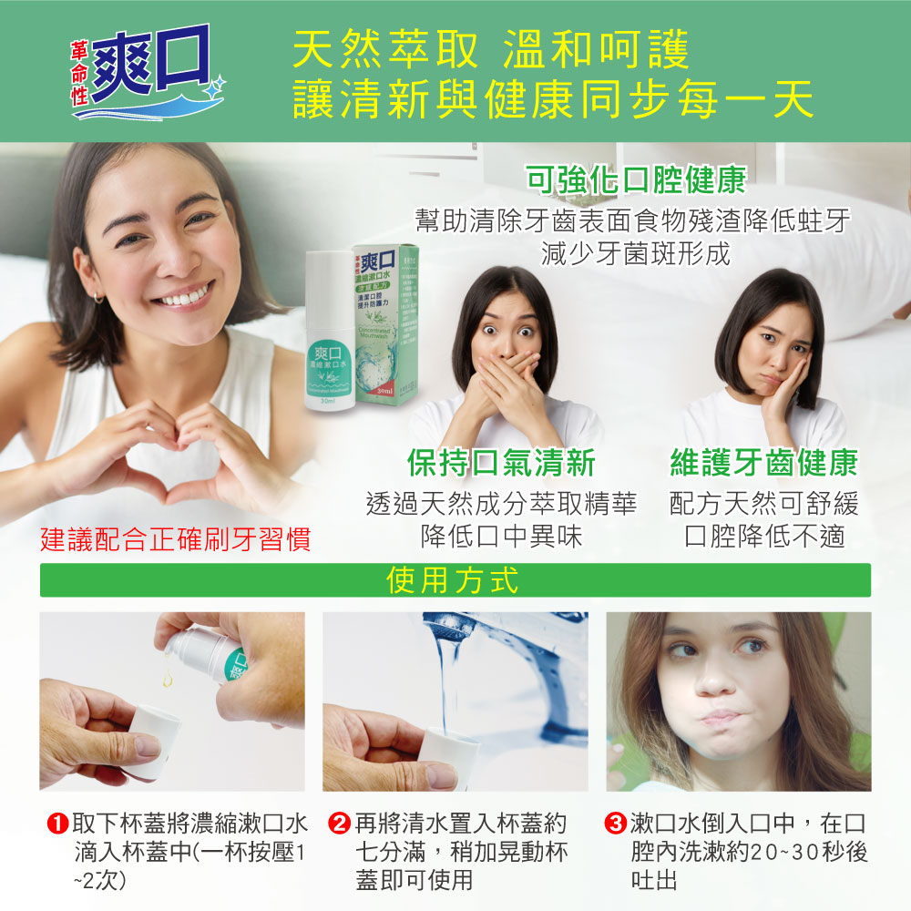 3.倒入口中,在口腔內洗漱約20~30秒後吐出即可。