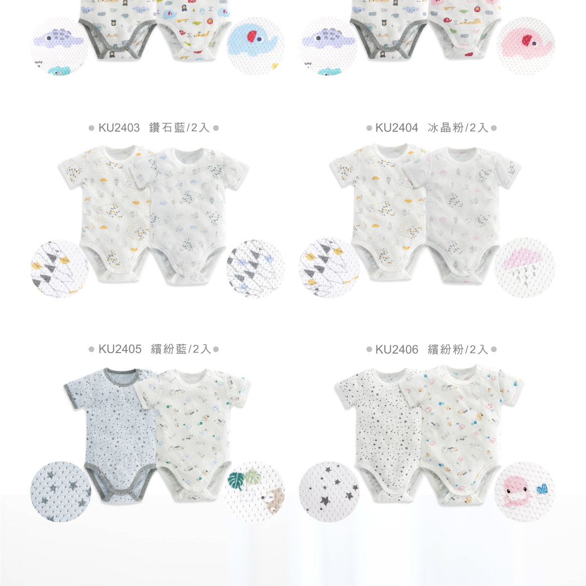 kuku 懶人包屁衣2入(3M/6M/1A)-繽紛藍/繽紛粉