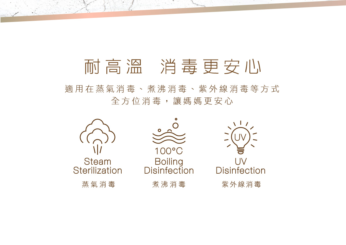 •嚴選頂級PPSU材質製成,符合FDA標準醫療級材質,不含雙酚A,輕盈抗摔,可耐190℃高溫並可反覆以蒸汽消毒。