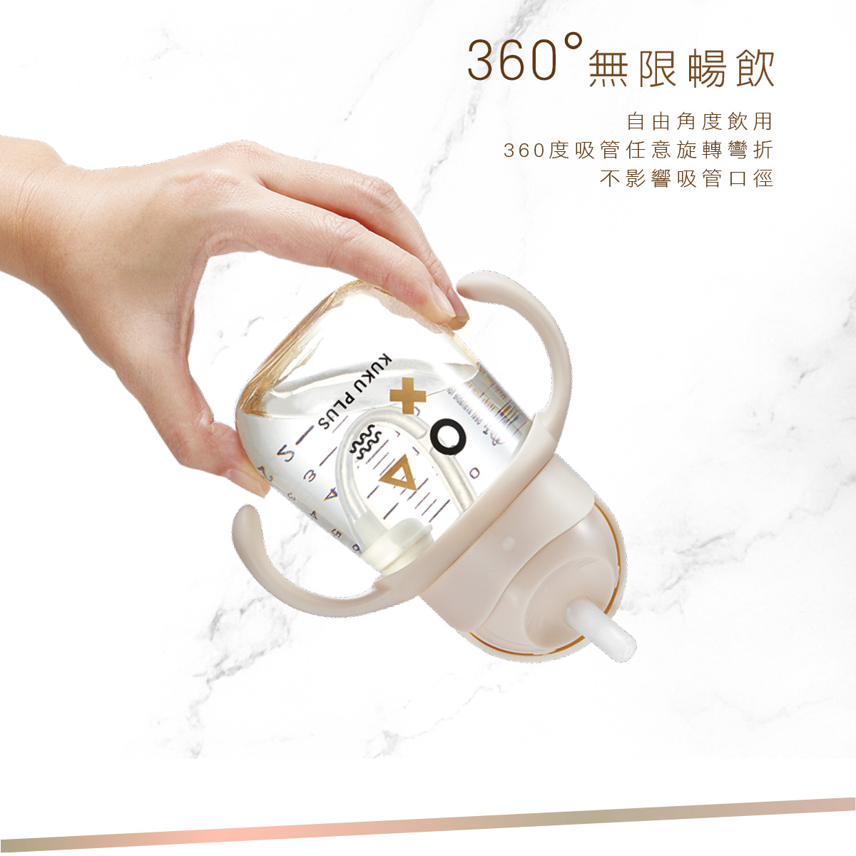 •360°吸管讓寶寶不管從任何角度都能輕鬆喝。