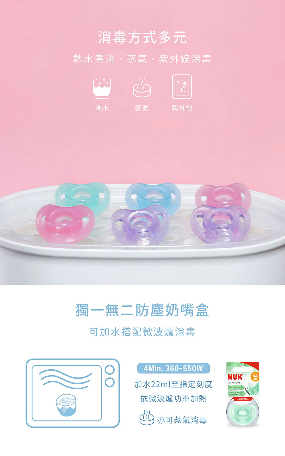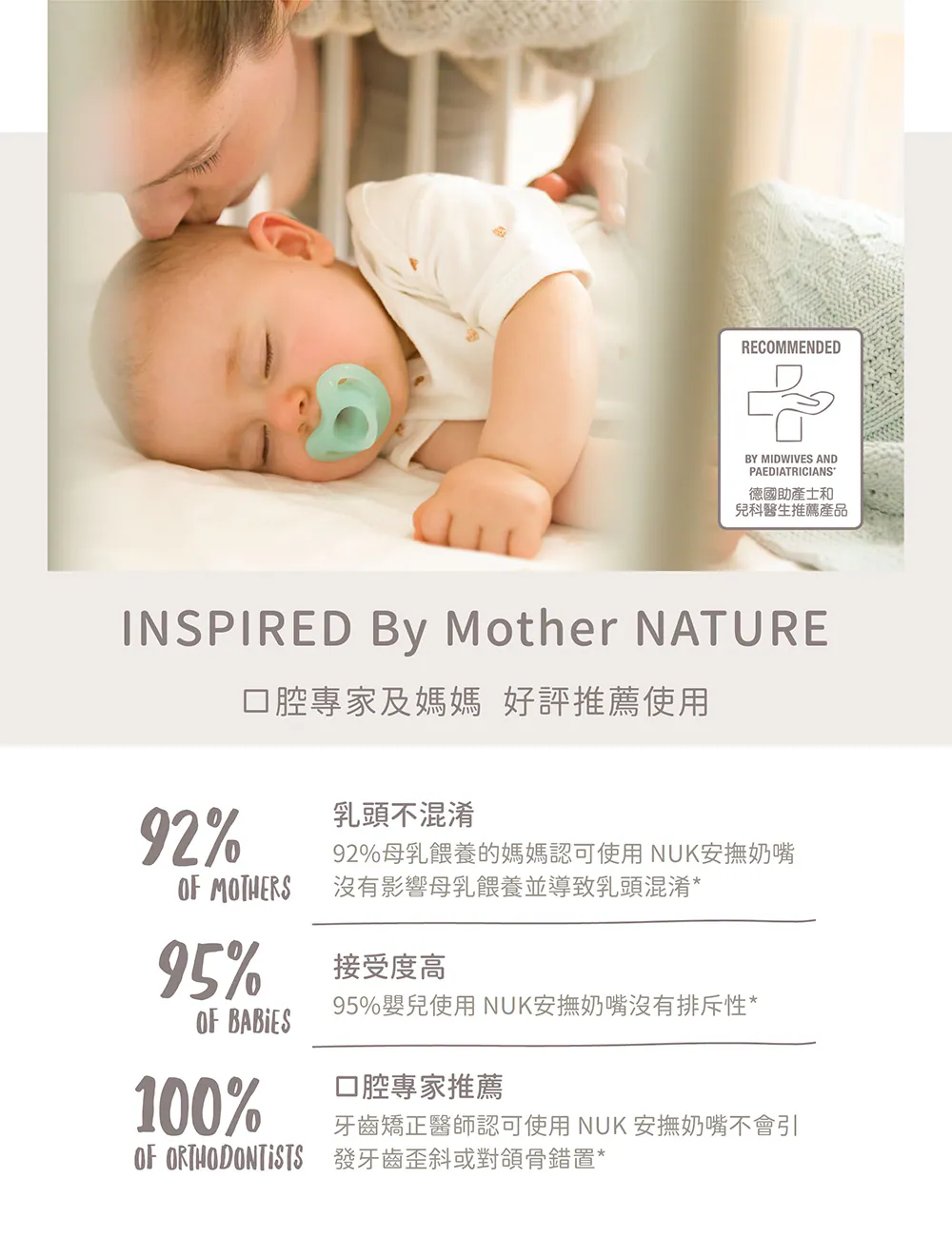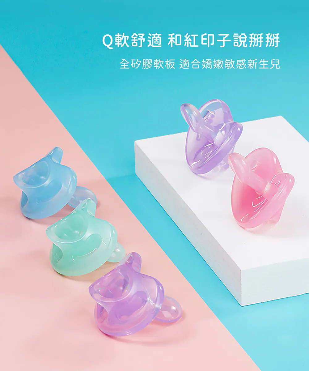 超柔軟全矽膠軟板設計,特別適合嬌嫩敏感的新生兒皮膚,德國牙醫學專家研發推薦,仿母乳拇指型奶嘴設計訓練寶寶吸吮,減少齒列不正風險,滿足口慾期安撫需求,不含雙酚A,貼心附防塵儲存盒,給寶寶最輕柔的吸吮感受