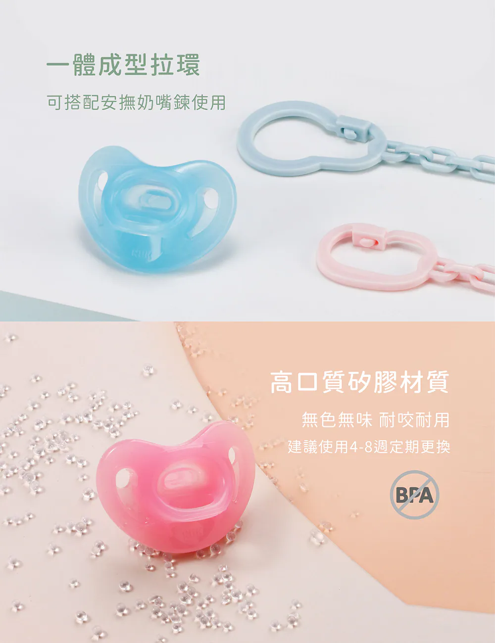 •一體成型拉環,可搭配奶嘴鍊用