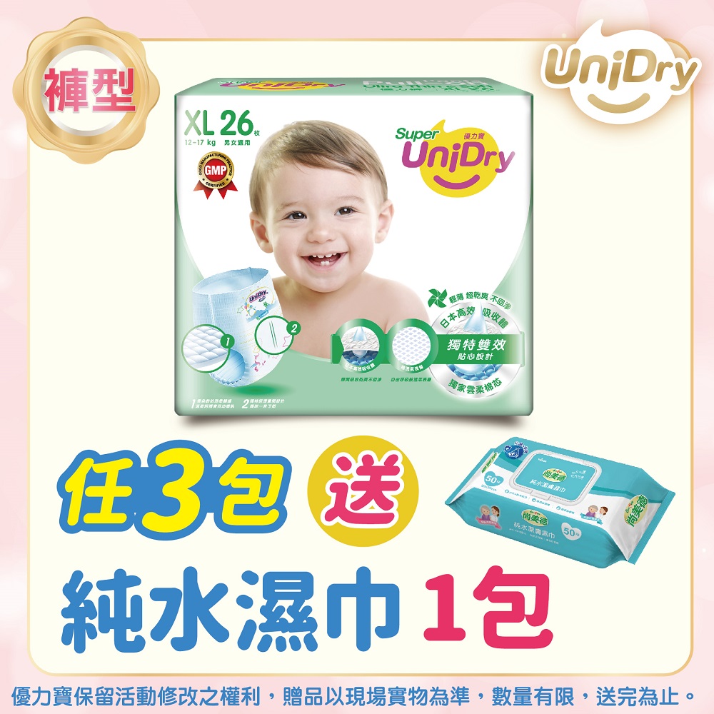 ★優力寶優力褲,任3包送濕巾1包,送完為止。