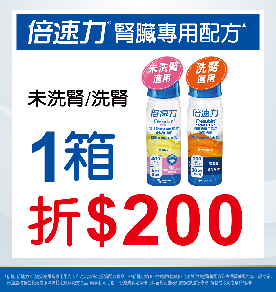 ☆倍速力腎臟病專用配方,買1箱折200元
